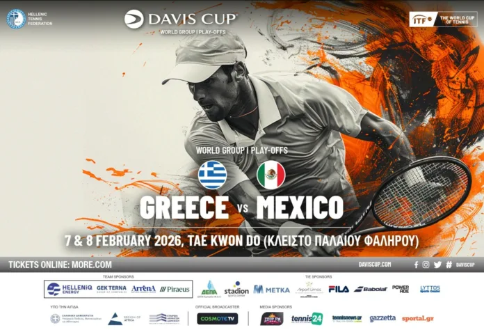 Η αντίστροφη μέτρηση για μια ακόμη κορυφαία αθλητική διοργάνωση στη χώρα μας έχει ξεκινήσει, καθώς άνοιξε επίσημα η προπώληση εισιτηρίων για την αναμέτρηση της Εθνικής Ελλάδας με το Μεξικό στο Davis Cup. Στις 7 και 8 Φεβρουαρίου 2026, η ελληνική ομάδα θα διεκδικήσει τη νίκη απέναντι στην αντίστοιχη του Μεξικού στο Κλειστό Γήπεδο Tae Kwon Do, το οποίο έχει διαμορφωθεί κατάλληλα για τις ανάγκες της διοργάνωσης.