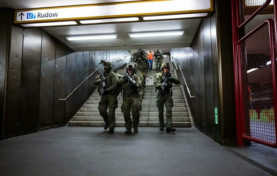 Ο γερμανικός στρατός πραγματοποιεί αυτή την εβδομάδα πενθήμερες ασκήσεις αστικού πολέμου σε διάφορα σημεία του Βερολίνου, συμπεριλαμβανομένου του σταθμού Jungfernheide, στο πλαίσιο της εκπαίδευσης ετοιμότητας για επιχειρήσεις σε πυκνό αστικό περιβάλλον. Η άσκηση, με την ονομασία Bollwerk Bärlin III, περιλαμβάνει σενάρια ταχείας ανάπτυξης δυνάμεων, φύλαξης κρίσιμων υποδομών και εκκένωσης τραυματιών.