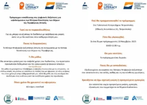 Δράση του Κέντρου Ψηφιακών Δεξιοτήτων Αττικής για όλους τους πολίτες – Μαθήματα στις 10 Νοεμβρίου στο Πολιτιστικό Κέντρο του Δήμου