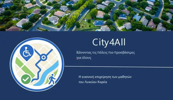 Η ομάδα City4All του Λυκείου Καρέα έχει ήδη διακριθεί σε μαθητική εμπορική έκθεση και συνεχίζει στον πανελλήνιο διαγωνισμό με μια εφαρμογή που καταγράφει και αναδεικνύει την προσβασιμότητα δημόσιων χώρων, προτείνοντας λύσεις για πιο συμπεριληπτικές πόλεις.