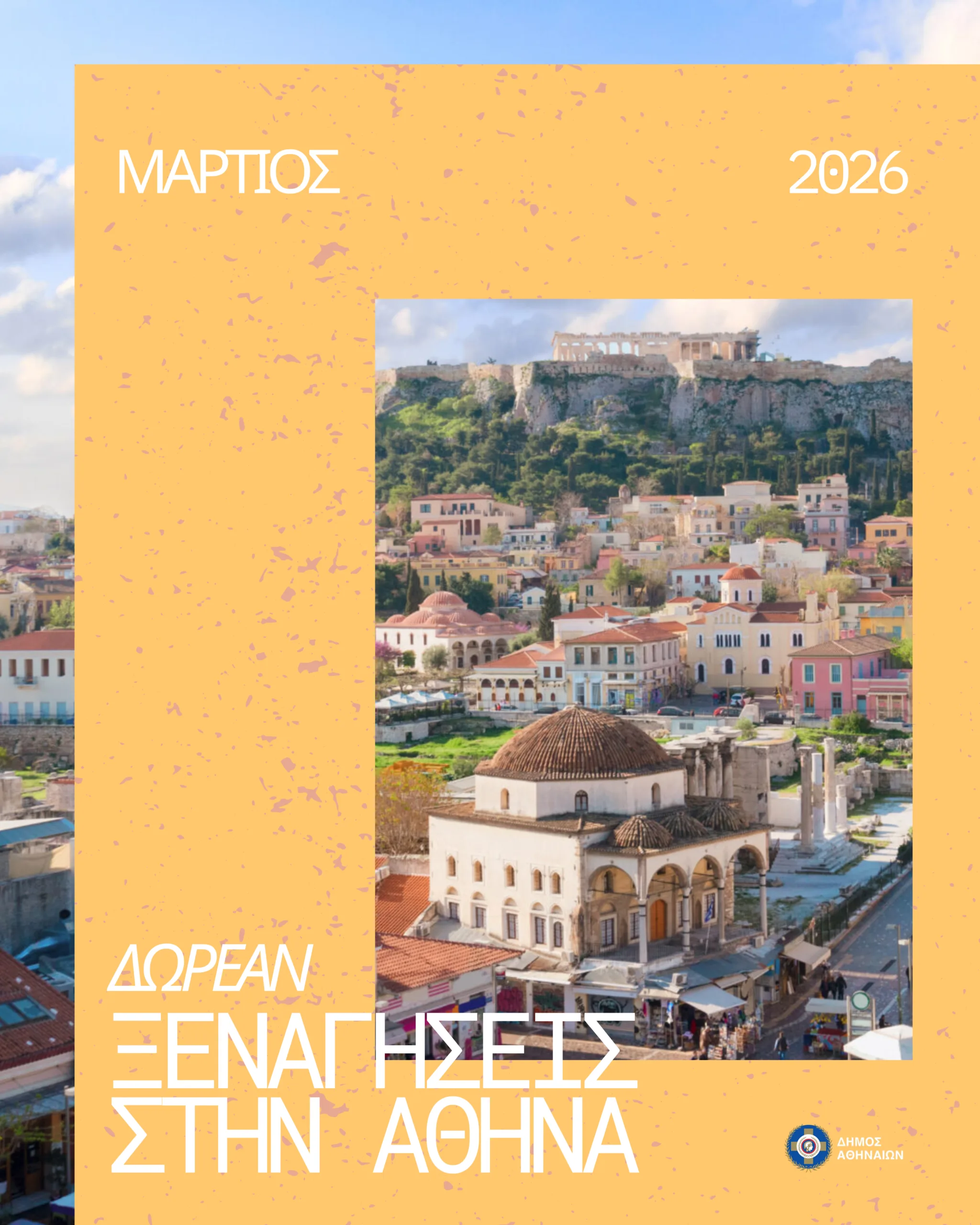 Δωρεάν ξεναγήσεις σε αρχαιολογικούς χώρους, μουσεία και εμβληματικά σημεία της πόλης προσφέρει καθ’ όλη τη διάρκεια του Μαρτίου ο Δήμος Αθηναίων, στο πλαίσιο του καθιερωμένου θεσμού των οργανωμένων περιπάτων του Σαββατοκύριακου. Οι δράσεις υλοποιούνται σε συνεργασία με το Σωματείο Διπλωματούχων Ξεναγών Αθήνας, με πρωτοβουλία της Εντεταλμένης Δημοτικής Συμβούλου Ιστορικής Ανάδειξης της Πόλης, Αρτέμιδος Σκουμπουρδή.