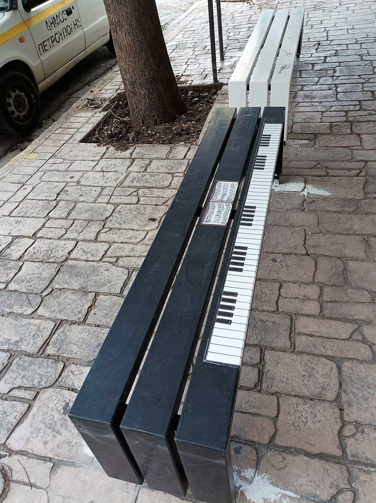 «Μουσική παιδεία» φαίνεται πως απέκτησαν, εκτός από τους μαθητές, και τα παγκάκια που βρίσκονται στην είσοδο του Δημοτικού Ωδείου της πόλης, μετά από τις εικαστικές παρεμβάσεις των ξυλουργών της Τεχνικής Υπηρεσίας του Δήμου Πετρούπολης, οι οποίοι με φαντασία, μεράκι και αγάπη για τις τέχνες και τον περιβάλλοντα χώρο, τα μετέτρεψαν σε έργα τέχνης, ντύνοντάς τα με νότες, χρώματα και μελωδίες.