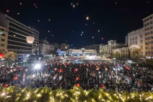 Μια μαγική βραδιά στην πλατεία Κοτζιά με χιλιάδες ευχές να ταξιδεύουν ψηλά, στο πλαίσιο των εορταστικών εκδηλώσεων του Δήμου Αθηναίων.